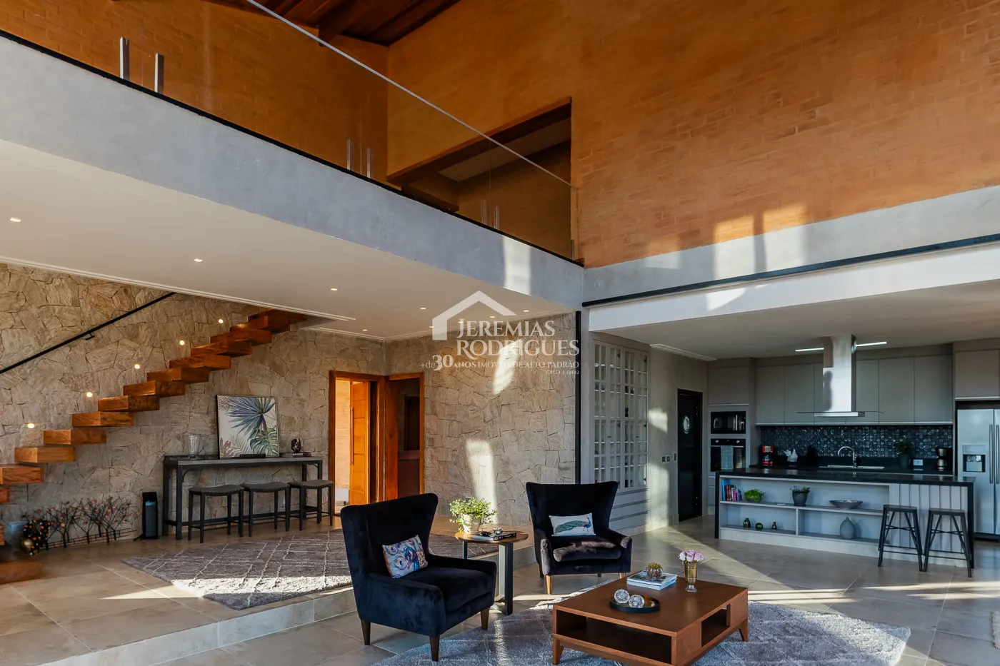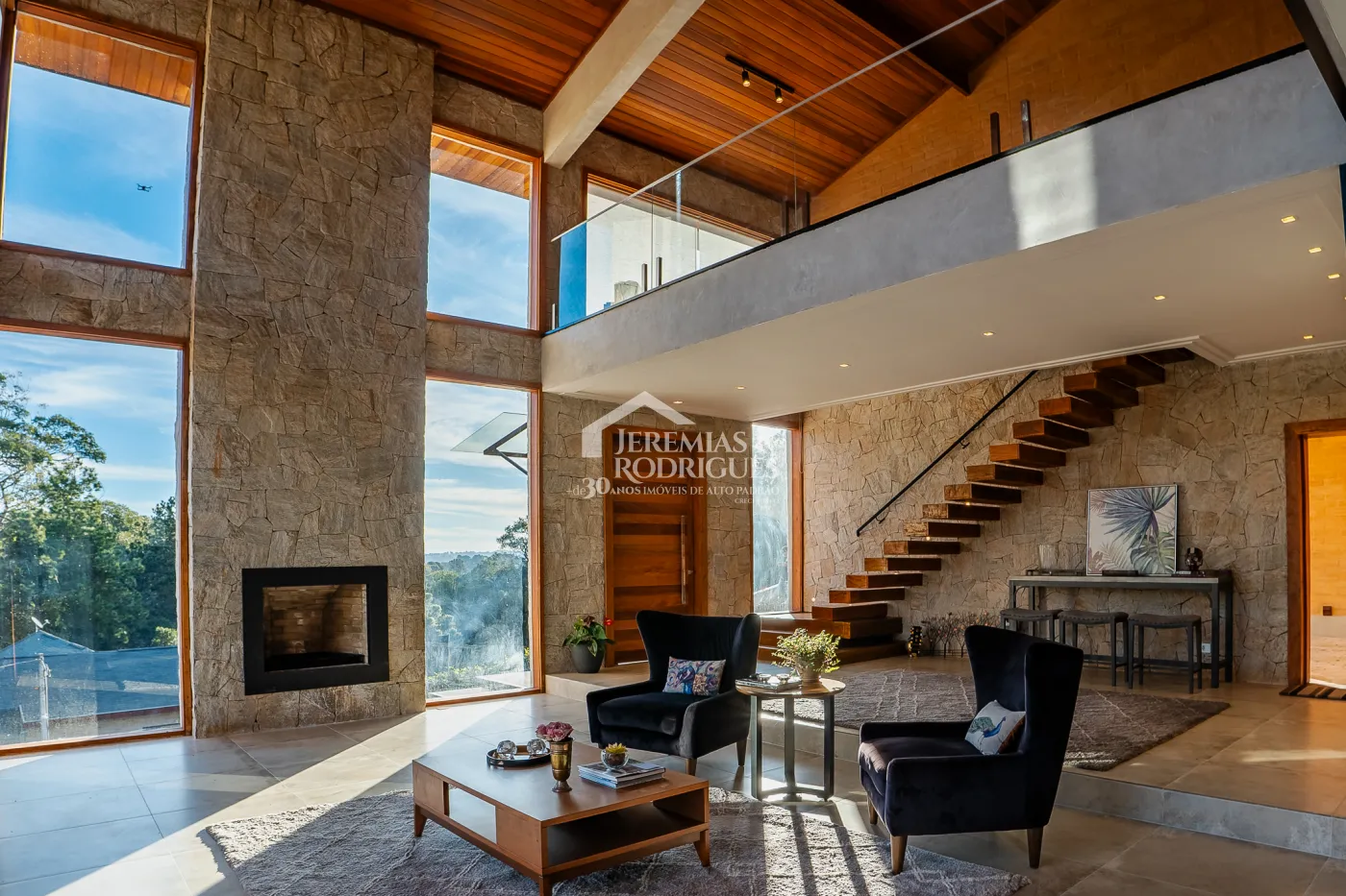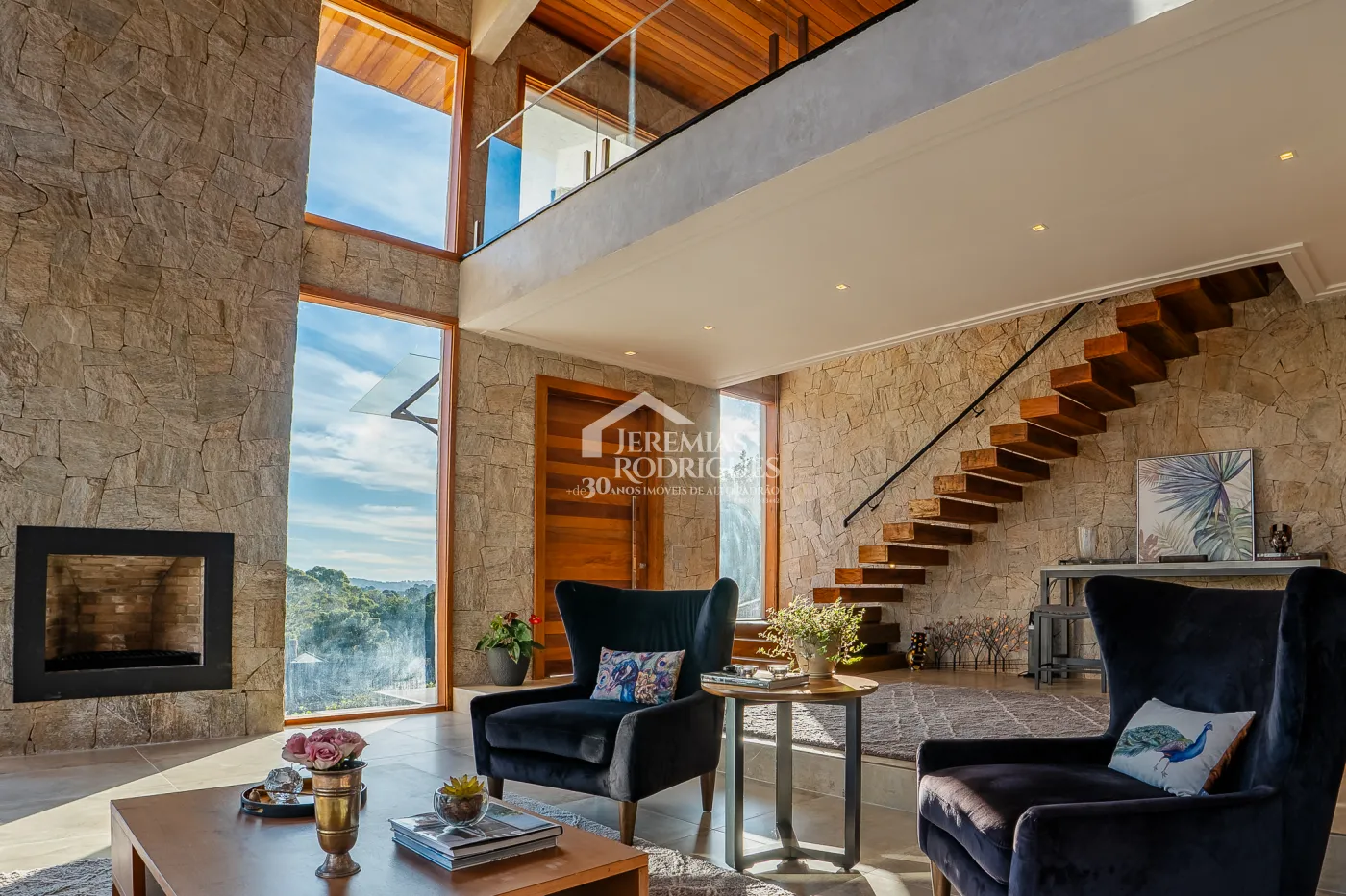 Sala ampla com lareira