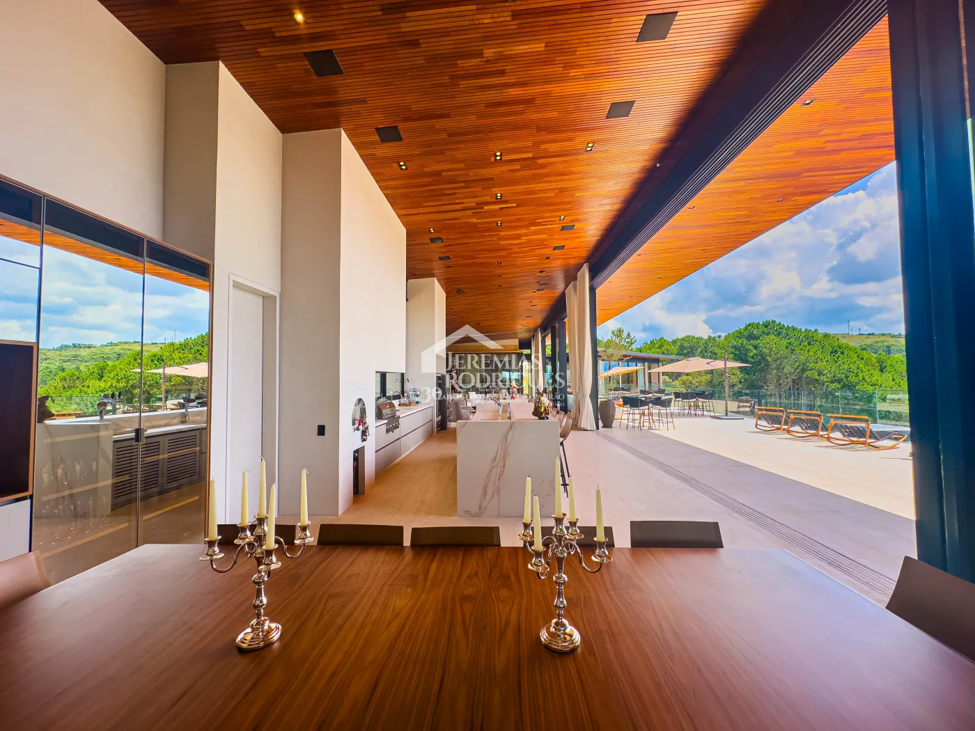 - Churrasqueira Coberta com mesa Dedon by Stark para até 14 pessoas e varanda integrada com mobiliário Casual Exteriores e aquecedores italianos a gás.