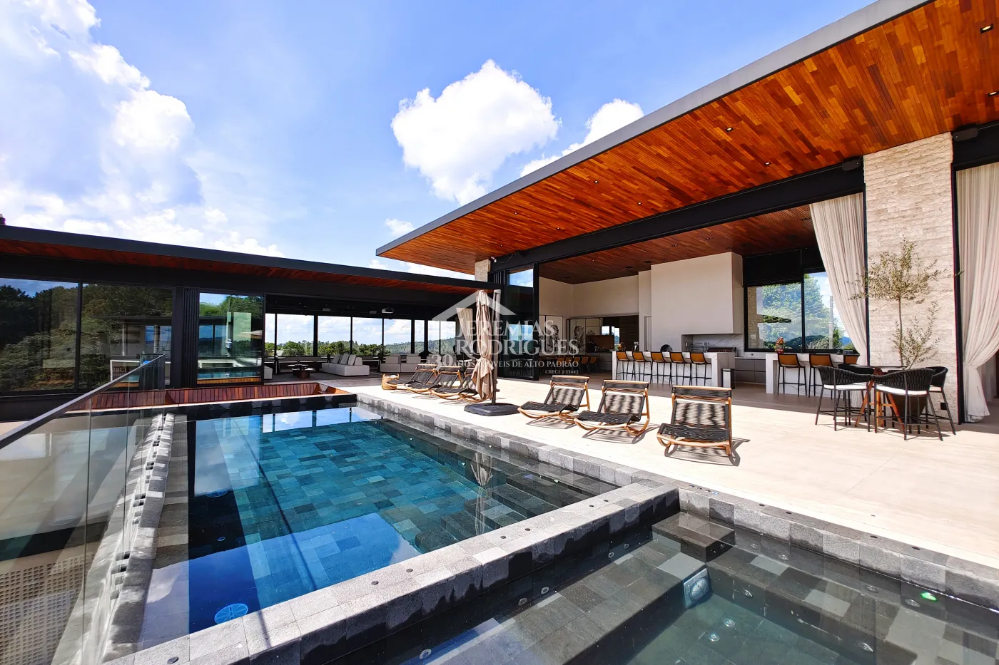 - Spa Externo para aproximadamente 10 pessoas integrado com um ambiente contendo lareira externa e um telão retrátil em Led de 160 polegadas.