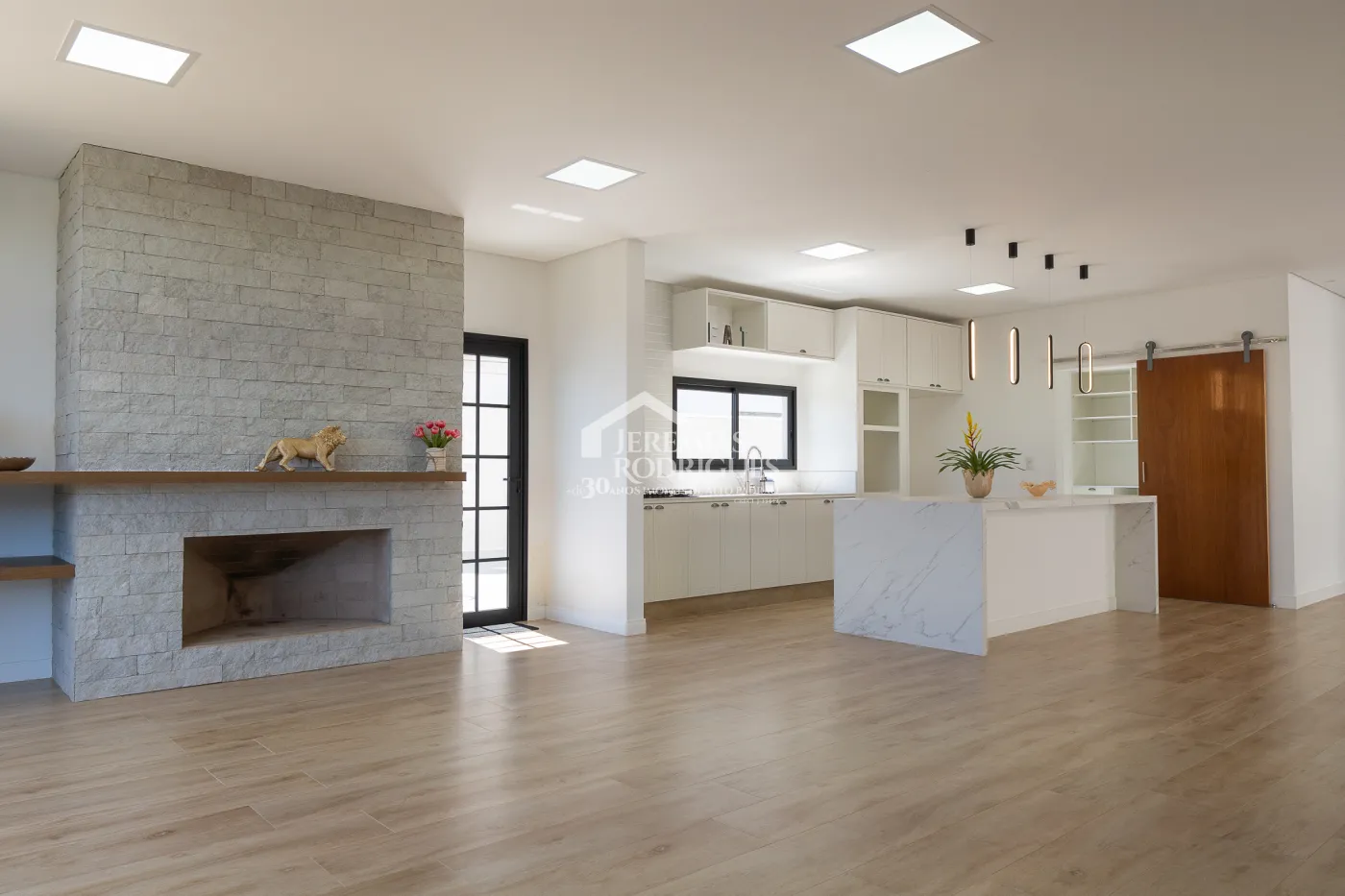 Sala de estar com lareira a lenha