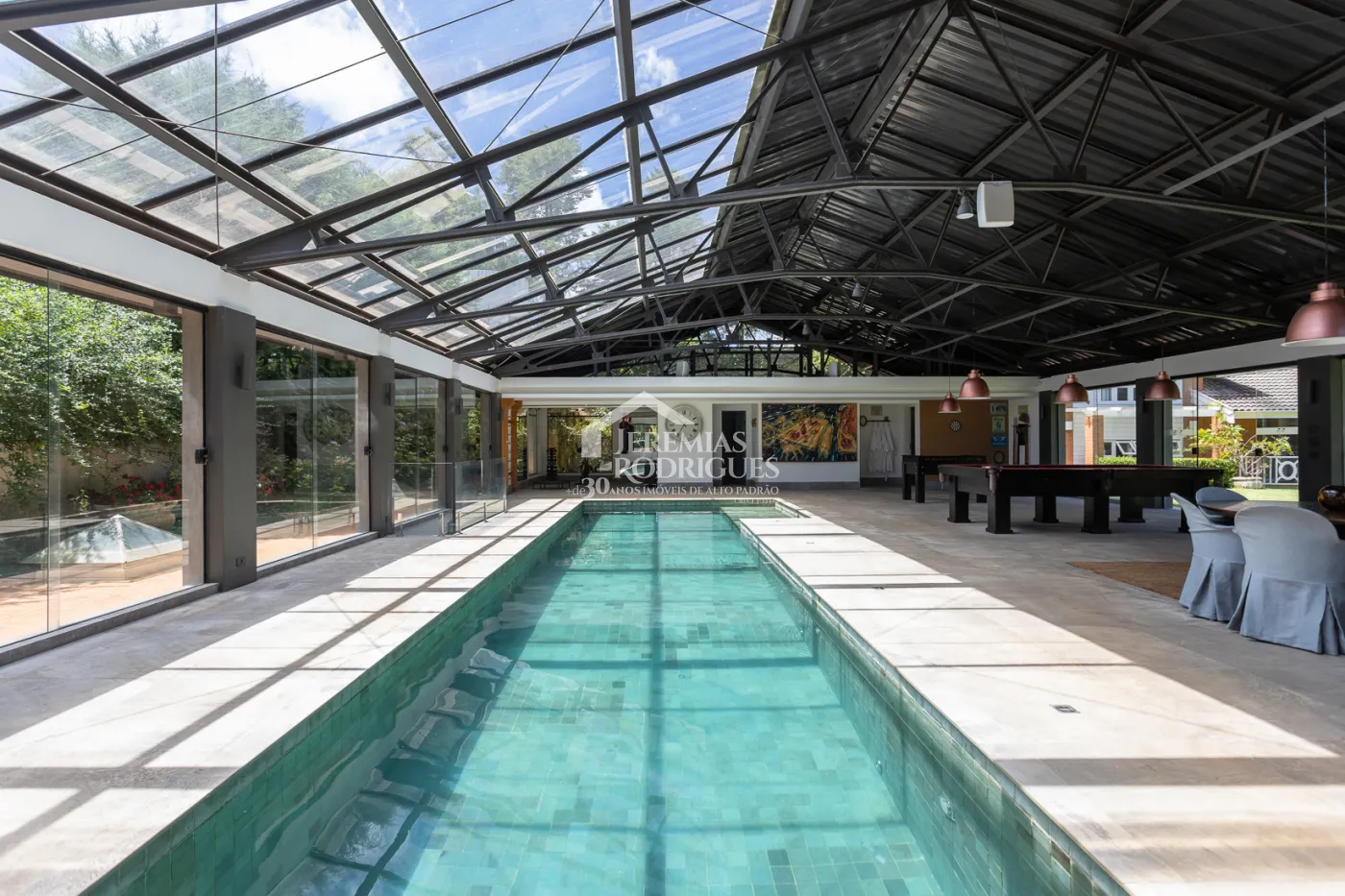 Piscina com raia com aquecimento solar e a gás