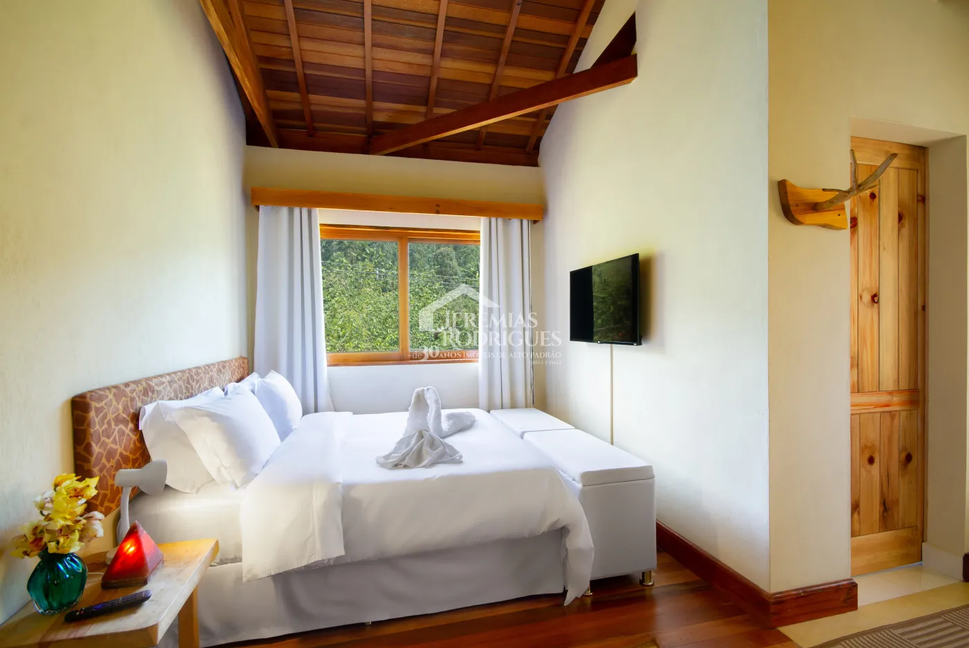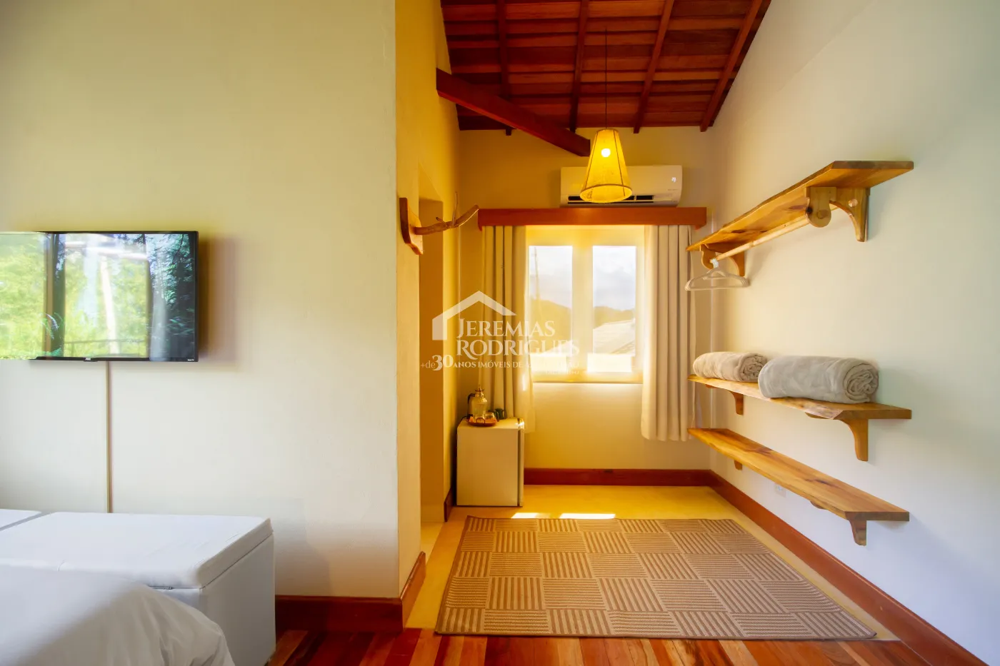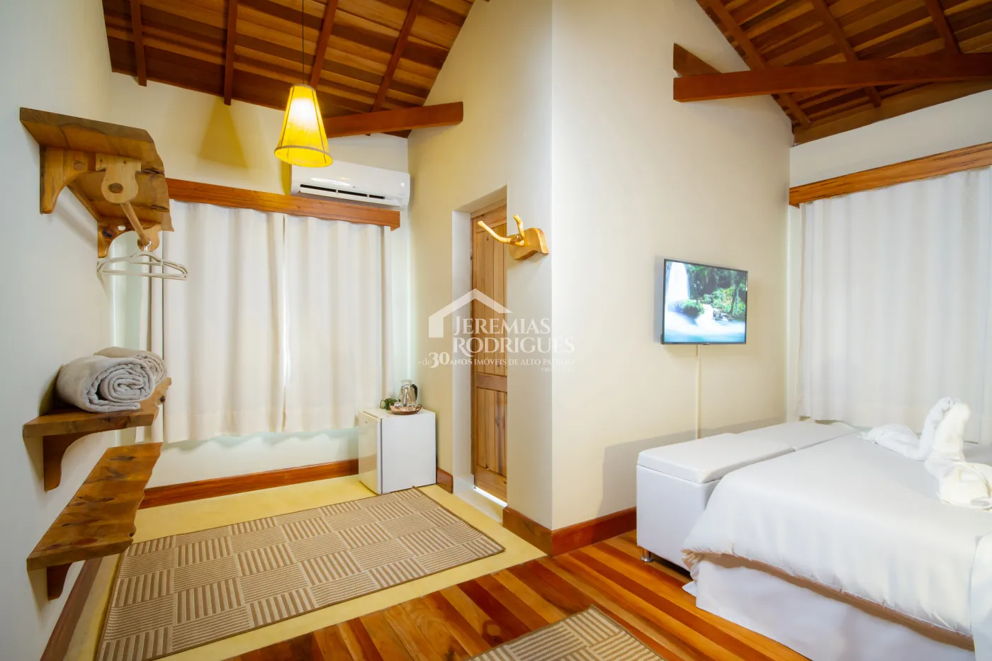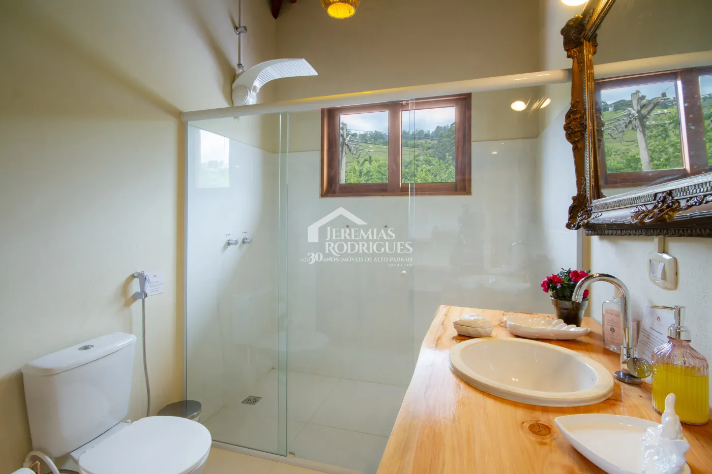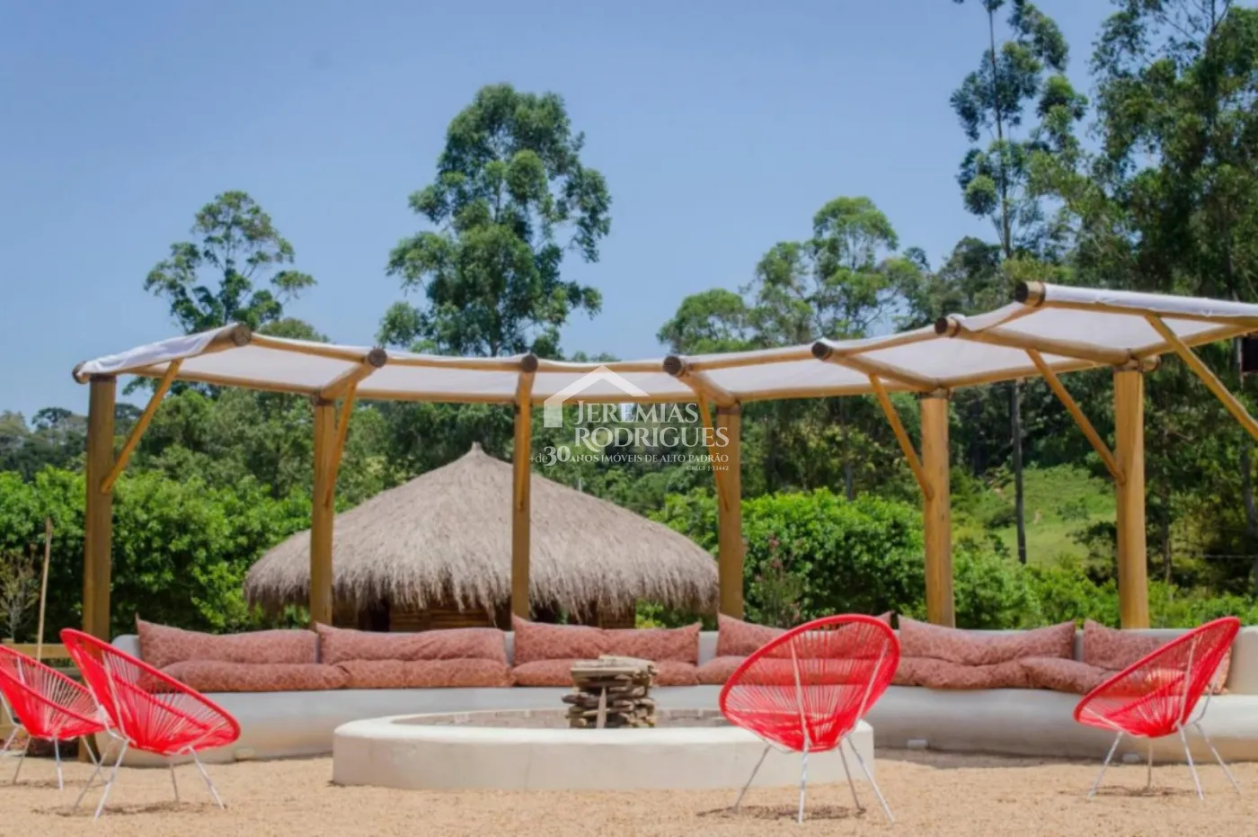 BENFEITORIAS: Após aquisição da atual proprietária, hoje a propriedade conta com mais ou menos 1300m² (mil e trezentos metros quadrados) de área construída; são duas casas (Casa Renot e Casa Família) com academia e 2 (duas) suítes anexo, 1 (uma) construção projetada para uma padaria com 4 (quatro) apartamentos suítes acima desta construção, 4 (quatro) baias de cavalos, 2 (dois) pergolados fechado por madeira para convívio na sombra, 1 (uma) área gourmet com cozinha bem ampla e equipada e um salão para eventos e restaurante com banheiros e balcão caixa, 1 (uma) área denominada Spa para massagens e terapias, áreas de piquetes fechados para permanência de animais ao ar livre, área de pastagem a beira de um riacho que corta a propriedade, estacionamento descoberto com pedriscos, portão automático, toda propriedade cercada e na frente foi feito muro de concreto, área externa em frente ao salão de restaurante preparada com pedriscos para colocação de mesas, espaço para descanso a beira de um fogo de chão, galinheiro e casinha de ferramentas. COBERTURA VEGETAL: Ainda há CAPACIDADE DE USO DA TERRA. Demais itens citados na Topografia se mantiveram iguais.