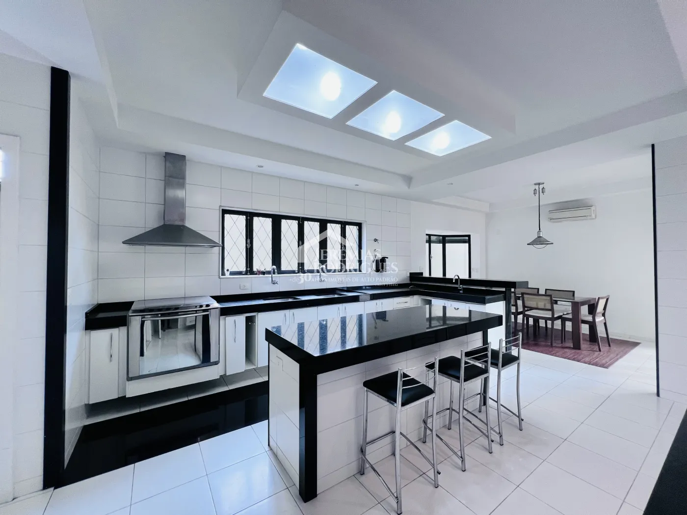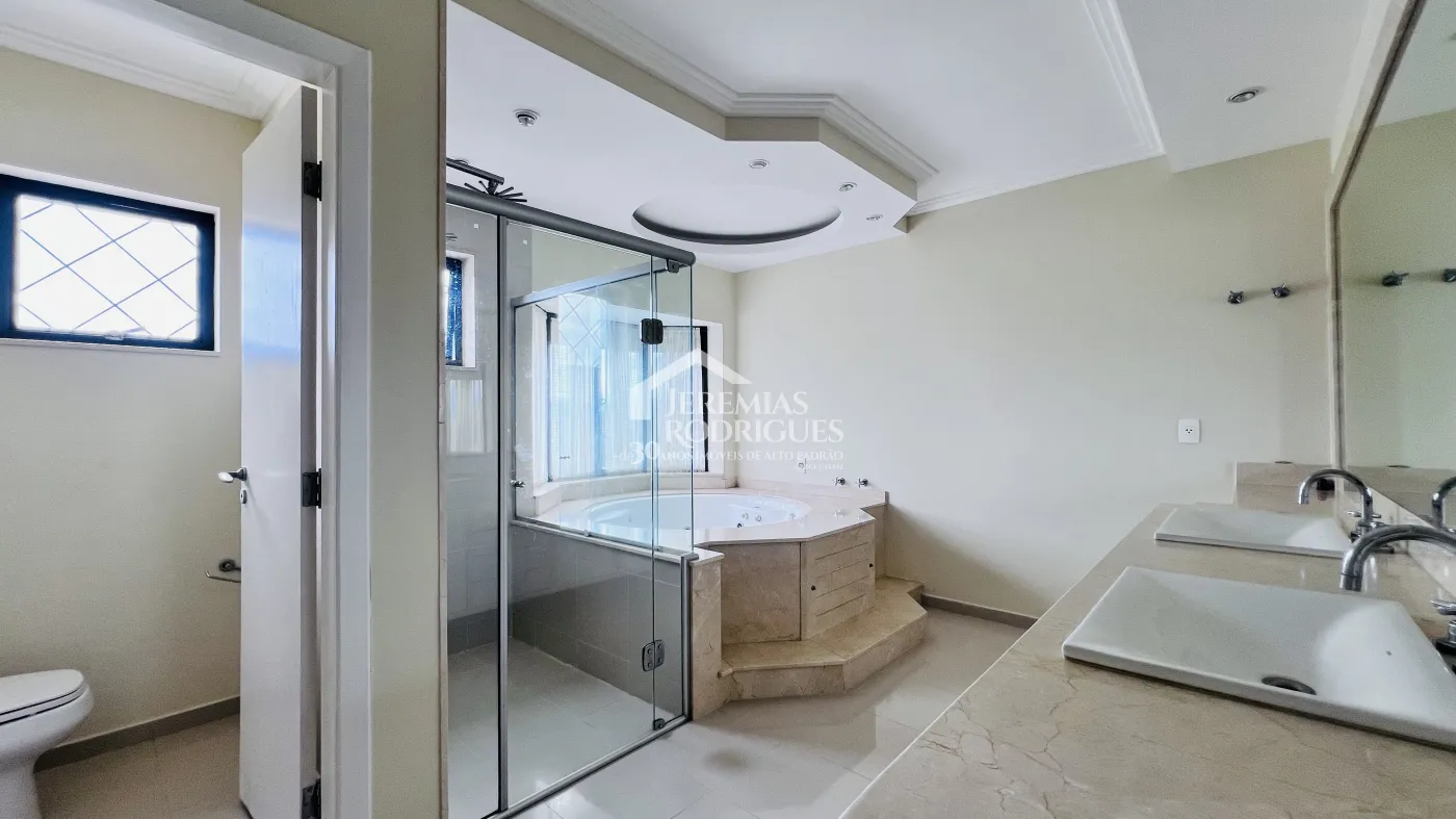 Com 1.118 m² de área total e 900 m² de área construída o imóvel dispõe de ampla cozinha, copa, despensa, área de serviço, três salas espaçosas, escritório, lavabo, oito dormitórios sendo sete suítes, hidromassagem, amplo quintal, varanda, sacada, linda área gourmet com churrasqueira, piscina coberta e quatro vagas de garagem cobertas.